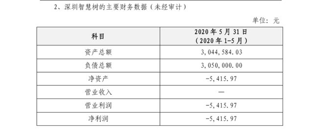 在公告中,半岛网站网页版页面登入-半岛online(中国)科技披露了深圳智慧树的主要财务数据(未经审计),如下图所示。